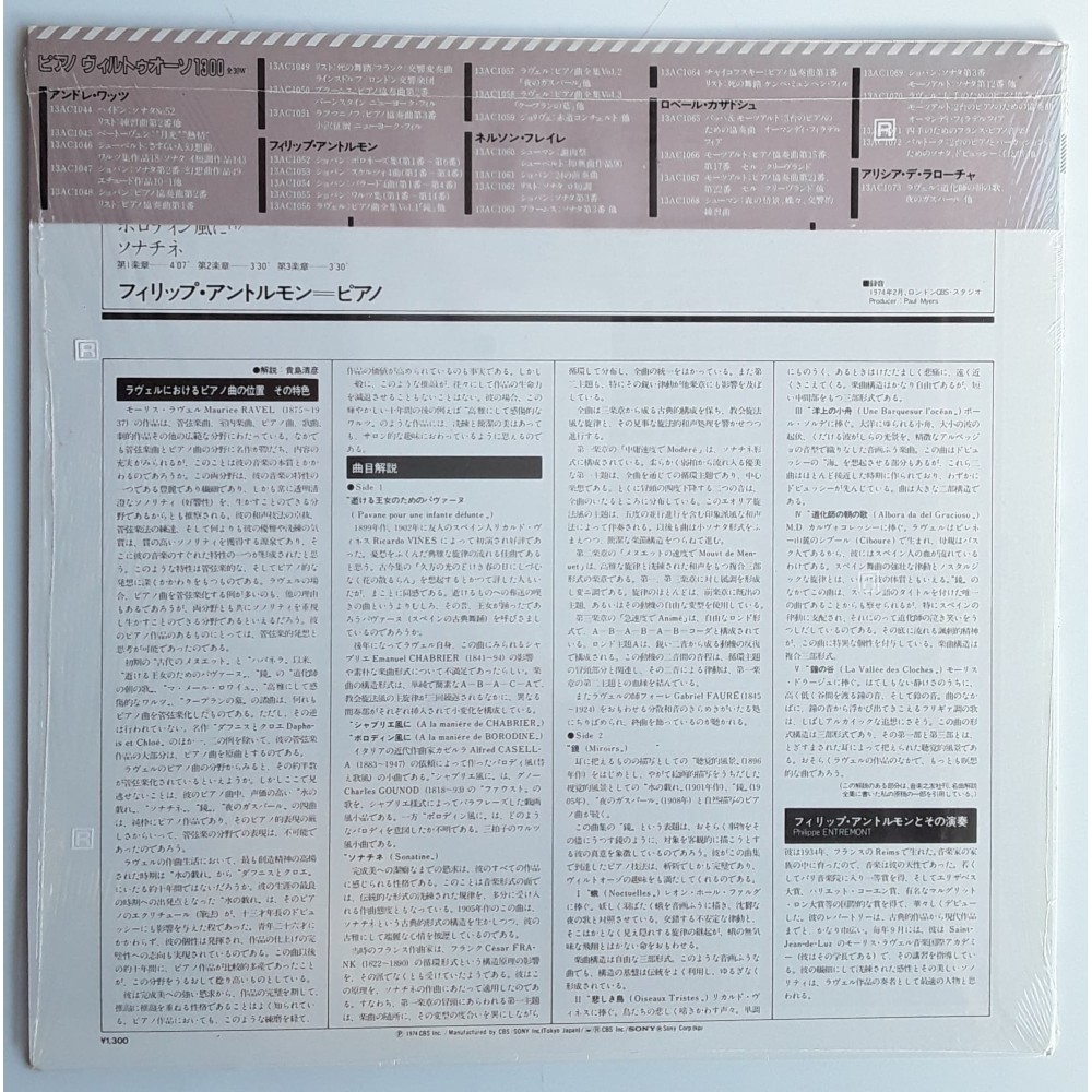 Ravel, Maurice - LP - JAP - Complete Works for Piano Vol.1