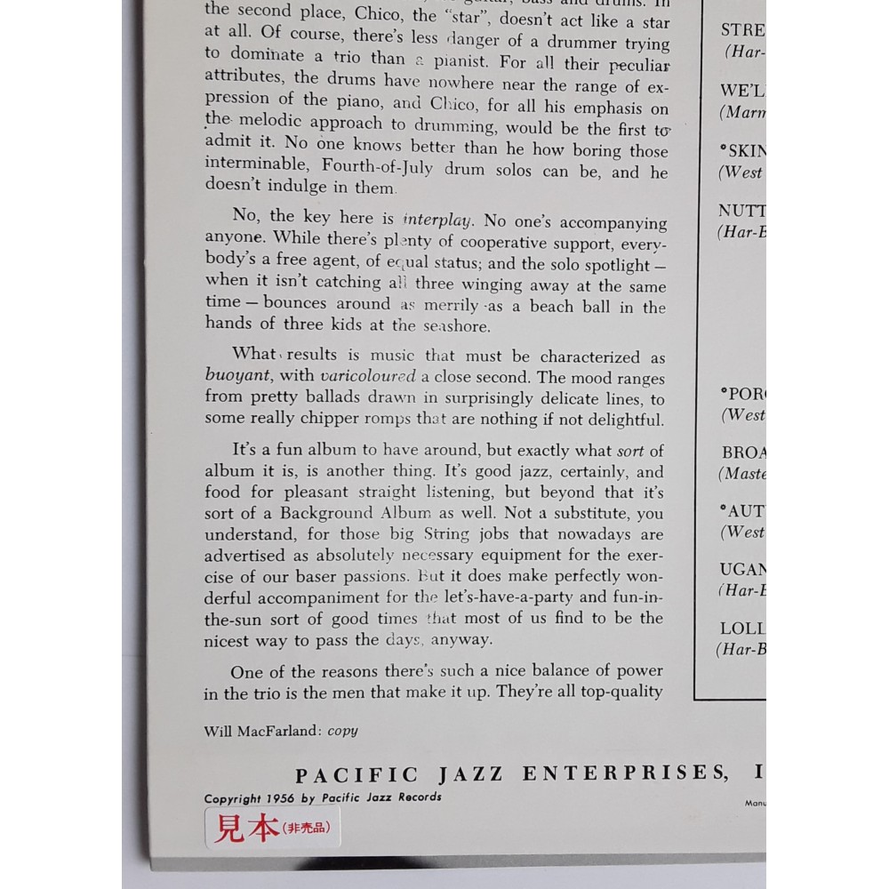Hamilton, Chico - LP - JAP - The Chico Hamilton Trio - PROMO
