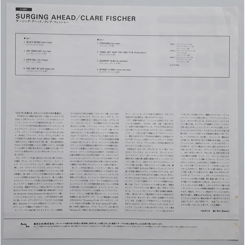 Fischer, Clare - LP - JAP - Surging Ahead