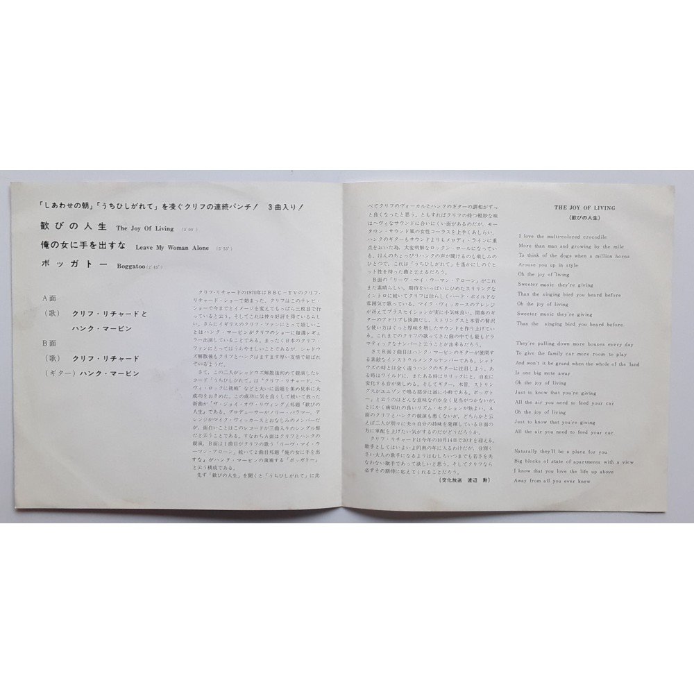 Cliff Richard & Hank Marvin - 7" JAP - The Joy of Living - WHITE LABEL PROMO