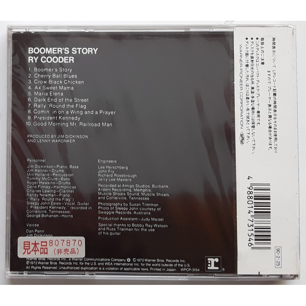 Ry Cooder - CD - JAP - Boomer's Story - PROMO - SEALED