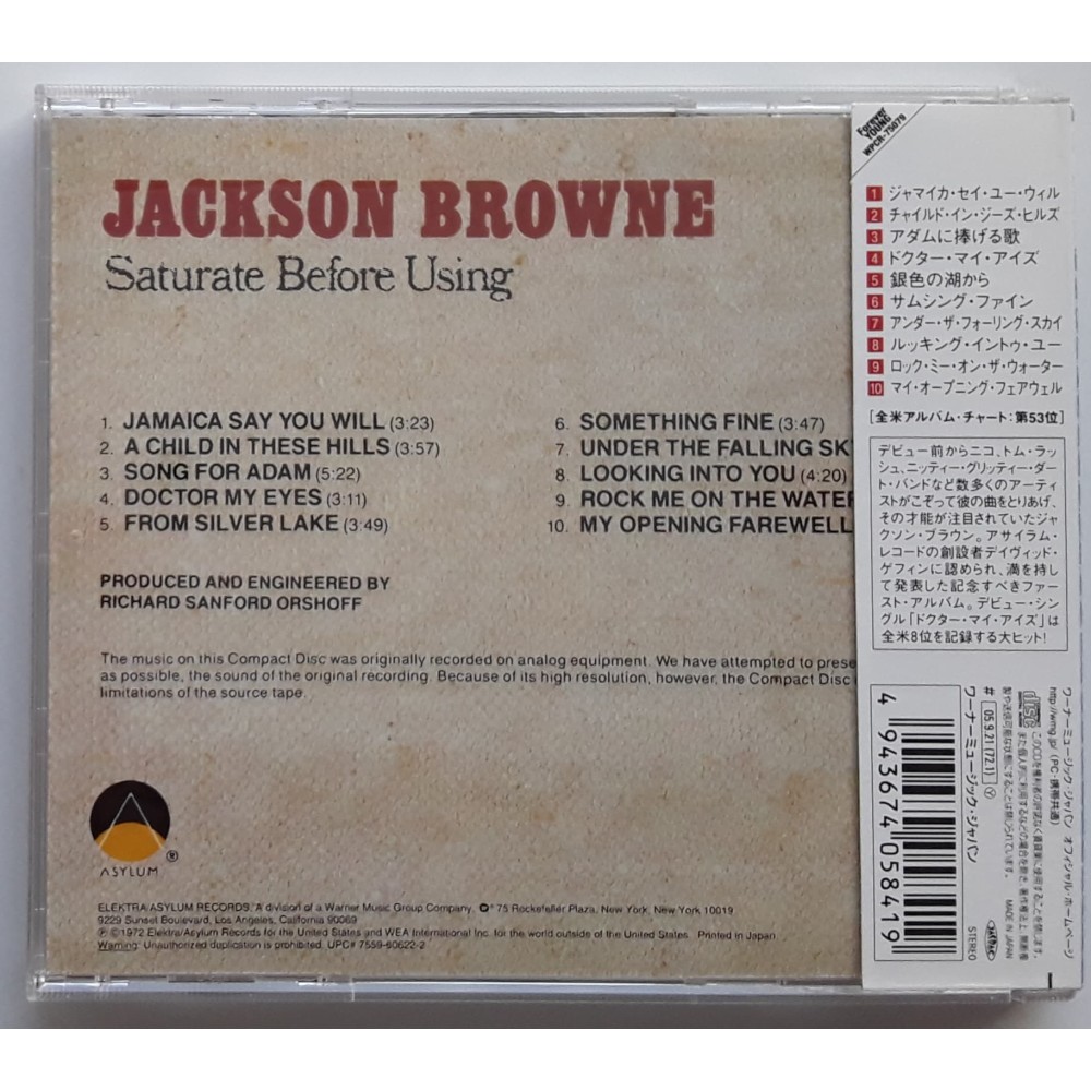 Browne, Jackson - CD - JAP - Saturate Before Using