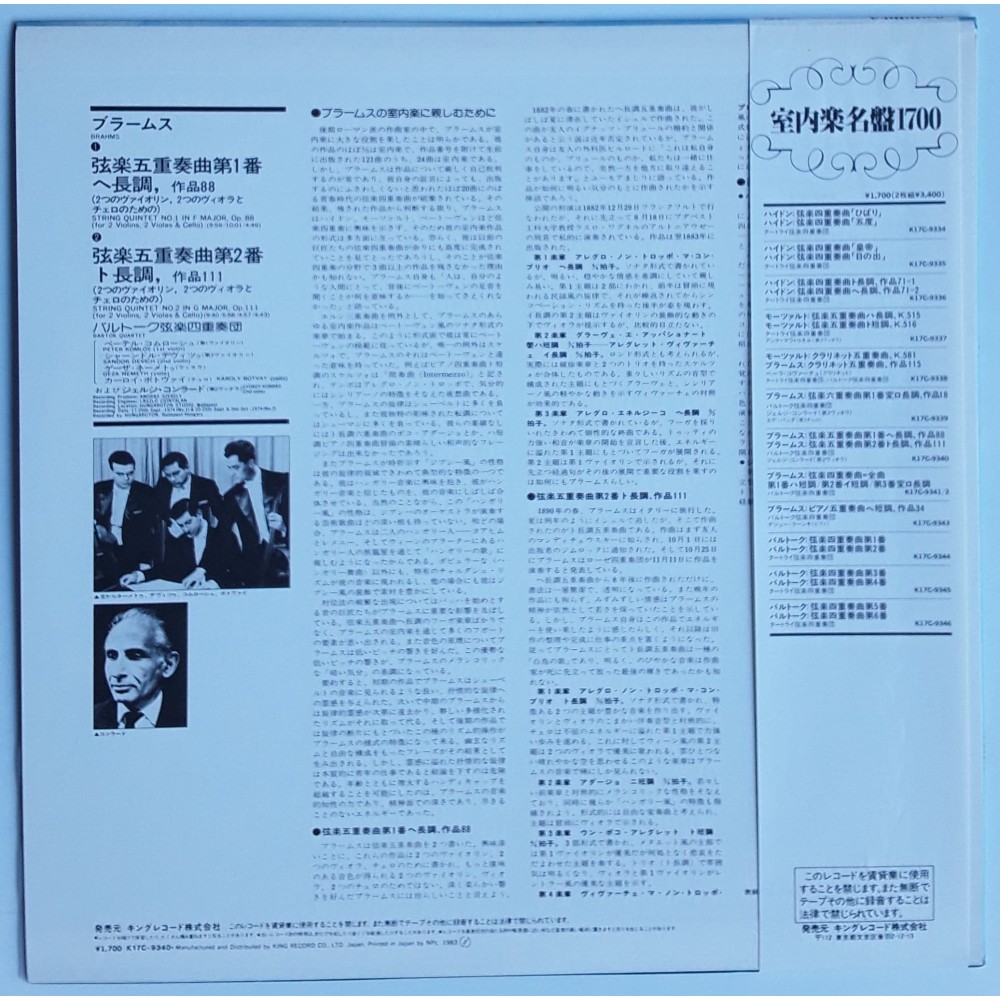Brahms - LP - JAP - String Quintets Nos.1 & 2