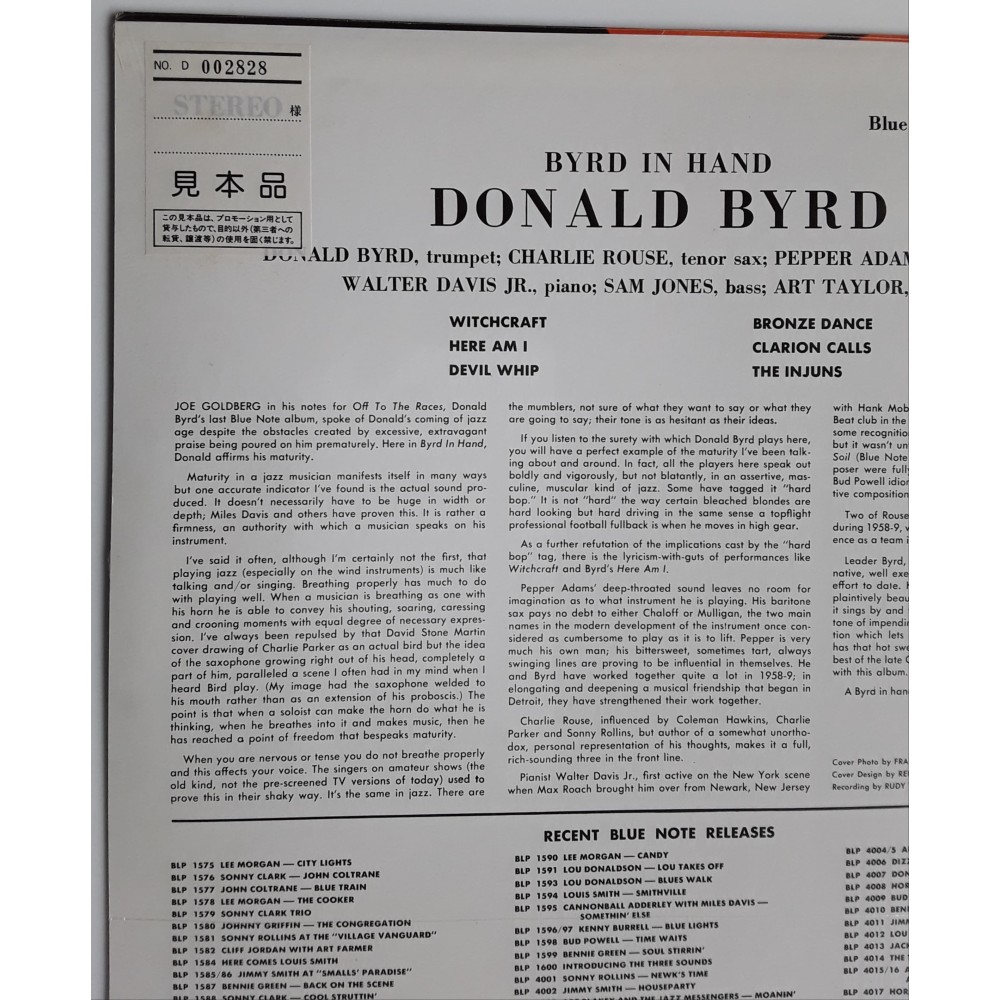 Byrd, Donald - LP - JAP - Byrd In Hand - PROMO - SEALED