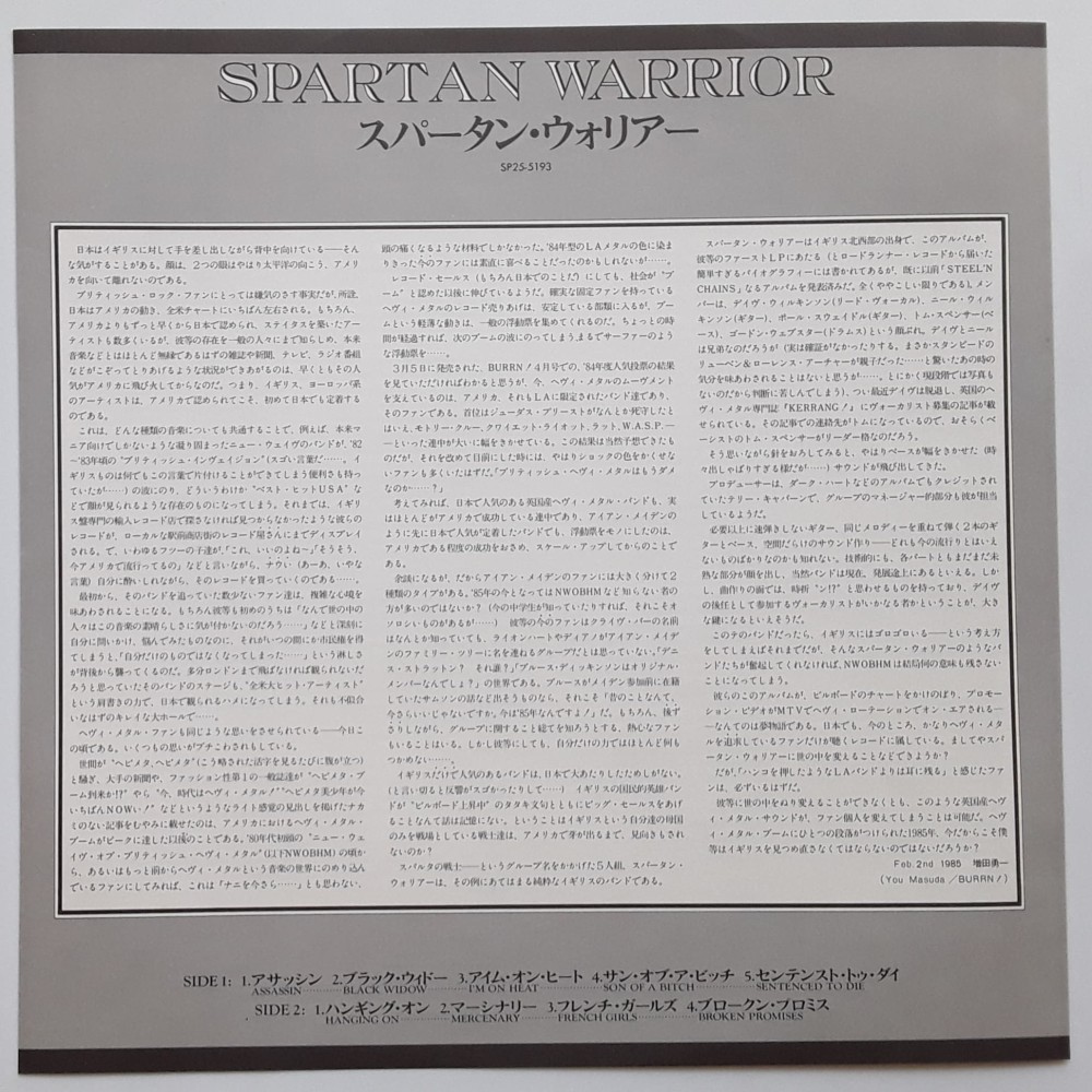 Spartan Warrior - LP - JAP - Spartan Warrior - PROMO