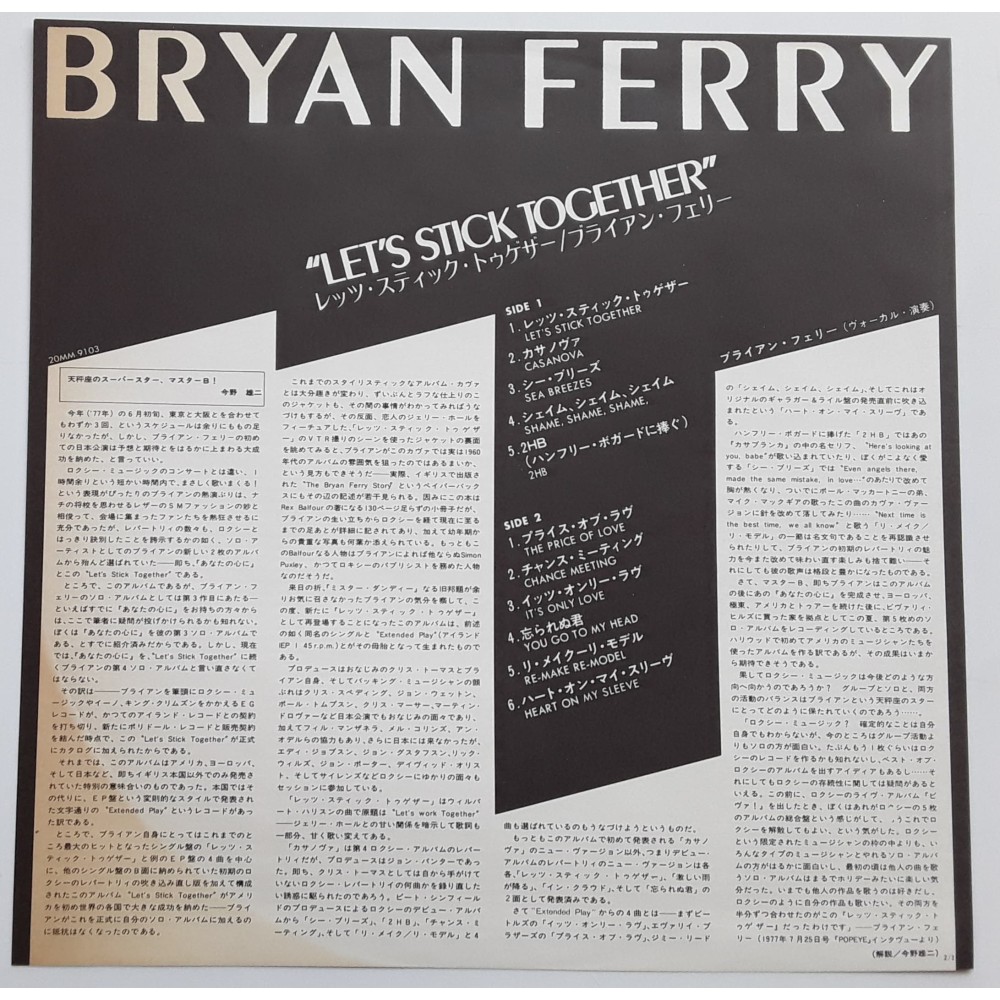 Ferry, Bryan - Roxy Music - LP - JAP - Let's Stick Together